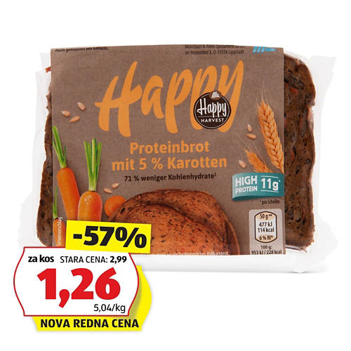 Beljakovinski kruh, s korenjem