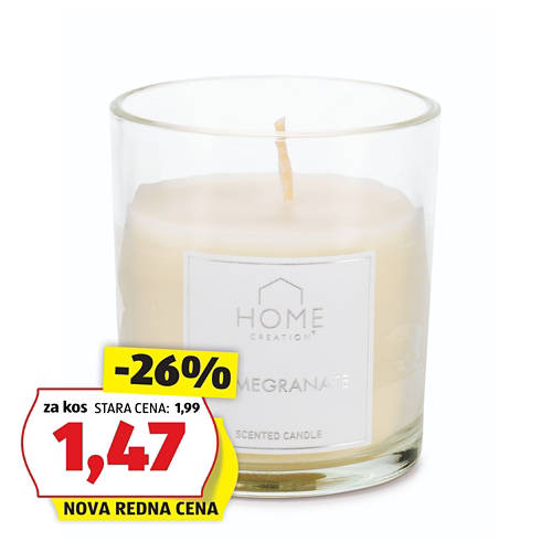 Dišeča sveča v kozarcu, granatno jabolko