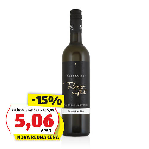 Minister za zdravje opozarja: Uživanje alkohola lahko škoduje zdravju! Ponudba vsebuje izdelke iz naše stalne in sezonske ponudbe z novimi nižjimi rednimi cenami. Izdelke je mogoče kupiti samo v količinah, običajnih za gospodinjstva. Slike so simbolične in pri nekaterih izdelkih vključujejo dekoracijo ali predlog za serviranje. Cene so v evrih, vključujejo DDV in veljajo za izdelke brez dekoracijskih dodatkov. Steklena embalaža je nevračljiva, cene vključujejo vse dajatve. Pridržujemo si pravico do tehničnih in vizualnih sprememb.