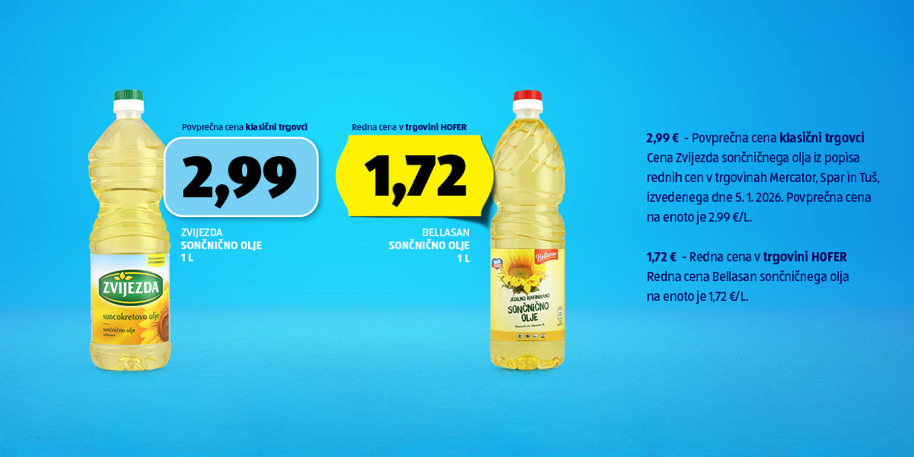 * Nakup s popisom cen je bil opravljen 5. 1. 2026, z aktualnimi ter dejanskimi cenami. Vse cene so bile preračunane na enako in med seboj primerljivo količino.
