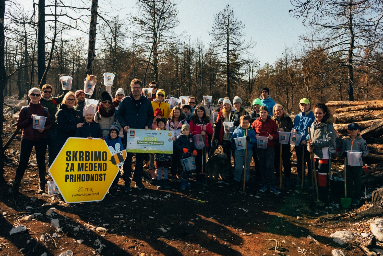 Lukovica, 7. marec 2023: Več kot 500 slovenskih čebelarjev in HOFERjevih sodelavcev se je prejšnji vikend zbralo na Krasu, kjer so s sejanjem avtohtonih medovitih dreves prispevali k obnovi pogorelega Krasa in tako zagotovili hrano za čebele v prihodnosti.