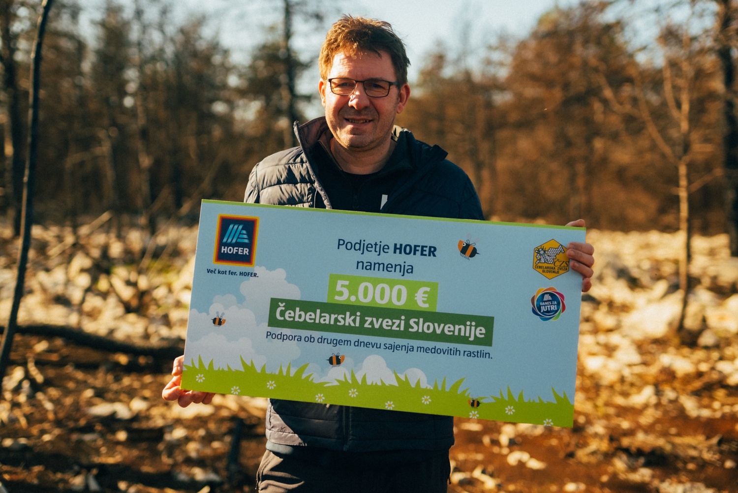 V okviru projekta Skrbimo za medeno prihodnost HOFER vsako pomlad tradicionalno krepi svoje aktivnosti za ohranitev čebel. Tako so se letos sodelavci HOFERja in njihove družine pridružili Čebelarski zvezi Slovenije (ČZS) in Zavodu za gozdove Slovenije pri sejanju medovitih dreves na lani pogorelem Krasu. Več kot 500 prostovoljcev je v enem dopoldnevu na območju Mirenskih borov posejalo 300 kilogramov semen medovitih dreves na 20 hektarjih pogorelega gozda in tako pripomoglo k ponovni rasti gozda na Krasu in prihodnosti čebel.