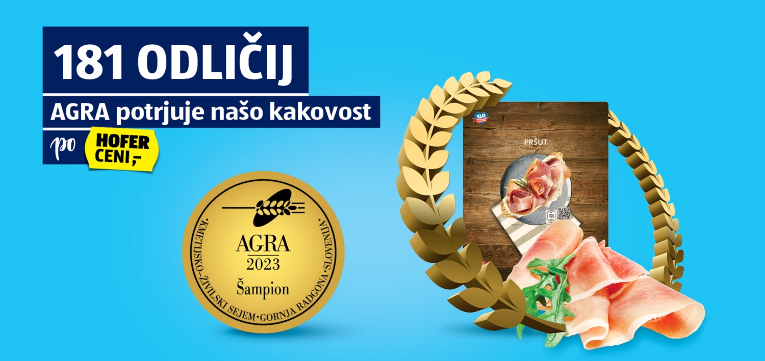 Pri HOFERju so znova prepričali mednarodne strokovnjake, saj so na 61. kmetijsko-živilskem sejmu AGRA 2023 prejeli 181 nagrad v šestih kategorijah: meso, mlečni izdelki, sladoledi, suhe mesnine, brezalkoholna pijača in vina. Slovenski trgovec s sloganom 'Dokazana kakovost po najboljši HOFER ceni' še kako upravičuje svoje besede, saj so v primerjavi z lanskim letom število nagrajenih izdelkov povišali za 40.