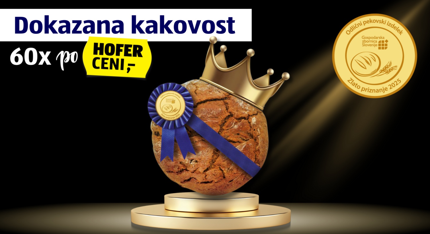 Zbornica kmetijskih in živilskih podjetij GZS je priznanja za odlično kakovost podelila že 25-ič. Zlato medaljo je tokrat prejelo kar 60 vrst izdelkov, ki jih najdete v trgovinah HOFER. Pri HOFERju sicer kruh in pekovske dobrote večkrat dnevno pečejo kar v svojih trgovinah, zato so kupcem pri njih vedno na voljo sveži in hrustljavi izdelki.