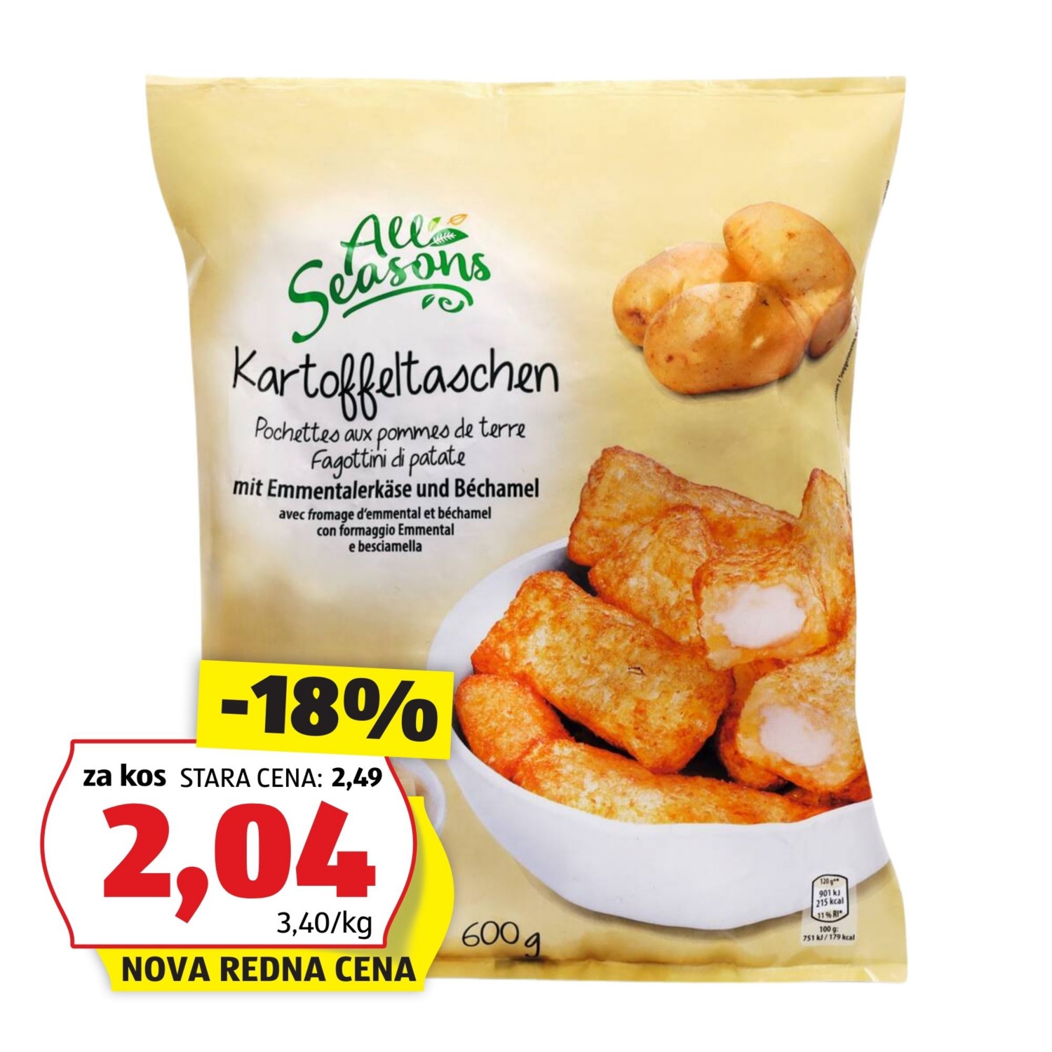 ALL SEASONS Krompirjevi žepki, ementaler