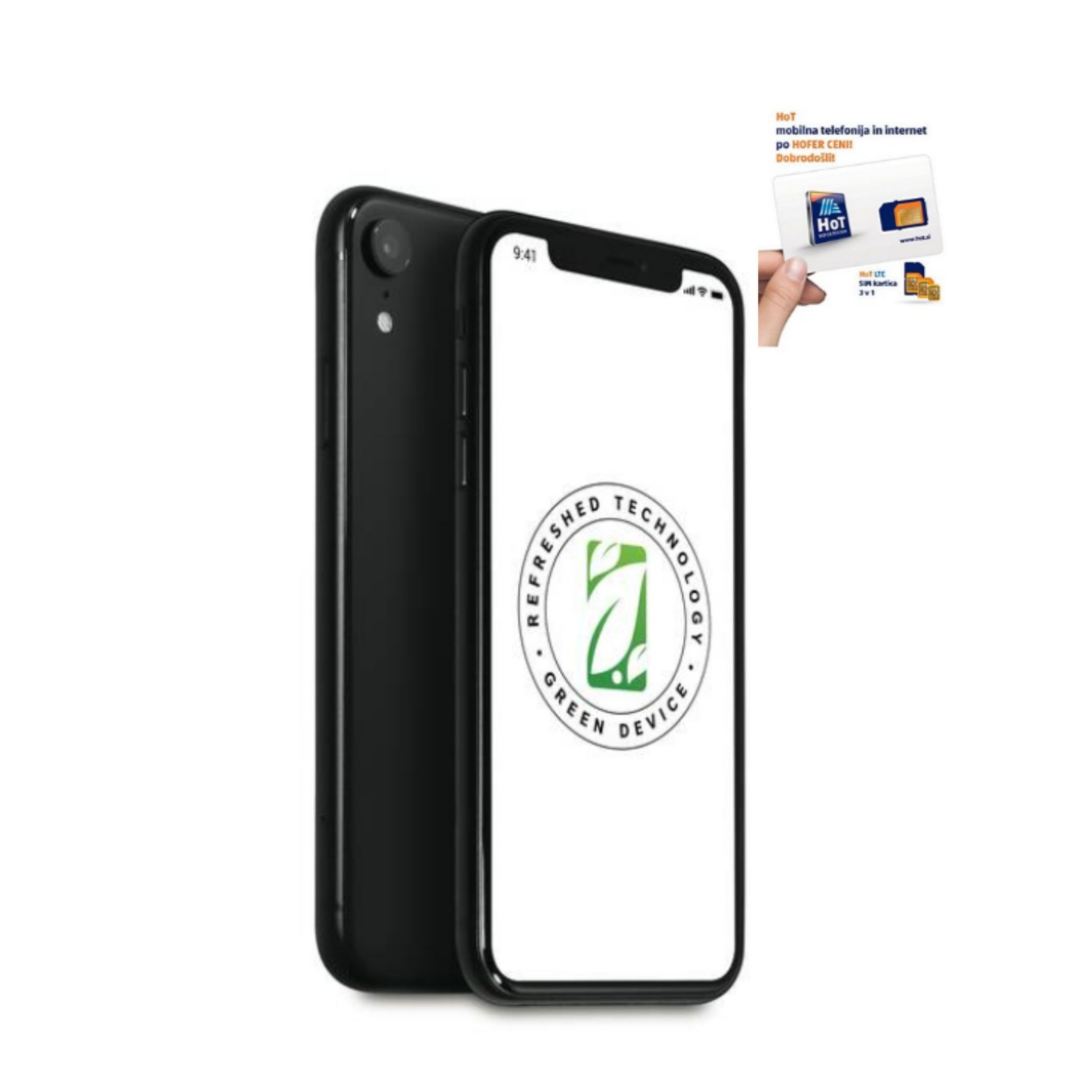 Vključena SIM kartica in paket HoT MAXI za prvih 30 dni brezplačno Model: iPhone Xr 128GB Barva: črna •Mere: 150.9 x 75.7 x 8.3 mm •Velikost: 6.1” •Ločljivost: Liquid Retina IPS LCD •Operacijski sistem: iOS 12,nadgradnja na iOS 16.0.2 •Senzorji: Prepoznava obraza, merilnik pospeška, žiroskop, proximeter, kompas, barometer •Grafična kartica: Apple GPU •Zadnje kamere: 12 MP, f/1.8, 26mm, 1/2.55", 1.4µm, PDAF, OIS •Sprednja kamera: 7 MP, f/2.2, 32mm (standard) SL 3D •Baterija: Li-Ion 3110 mAh •Teža: 194 g embalaža iz 100% recikliranega papirja;polnilni kabel (brez vtikača) Obnovljeni telefoni z znakom Refreshed technology so certificirano pregledani telefoni, ki imajo zagotovilo o delovanju – delujejo kot novi in tudi videti so kot novi. V ponovno uporabo so dani z 1-letno garancijo. Z nakupom take obnovljene naprave lahko brez kompromisov glede uporabe prispevamo k odgovorni potrošnji, skrbimo za zeleno prihodnost, varčujemo z naravnimi viri in zmanjšujemo količino odpadkov – nedvomno prava odločitev za lepši jutri. Številka izdelka: 725814