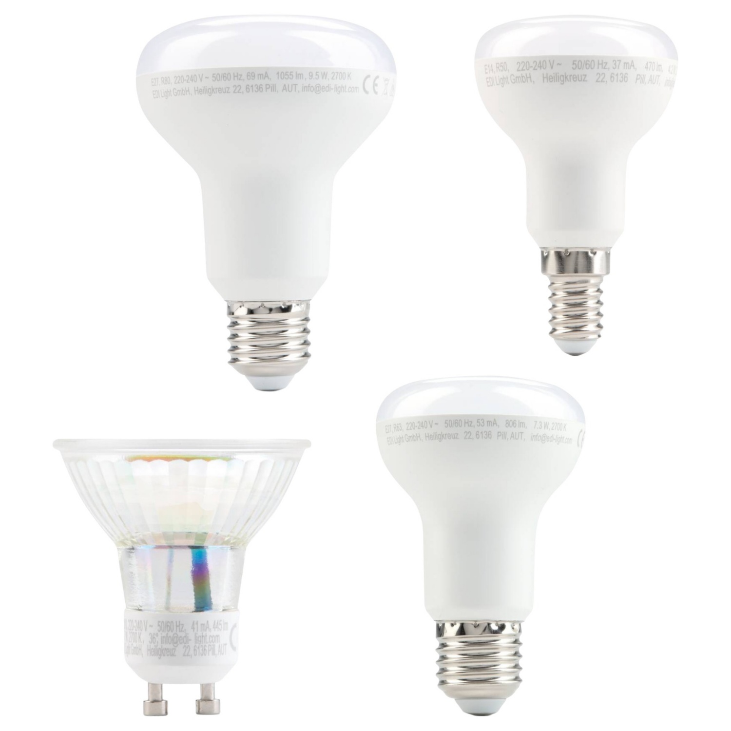 - R80: 9,5 W, 1.055 lm, E27, ali