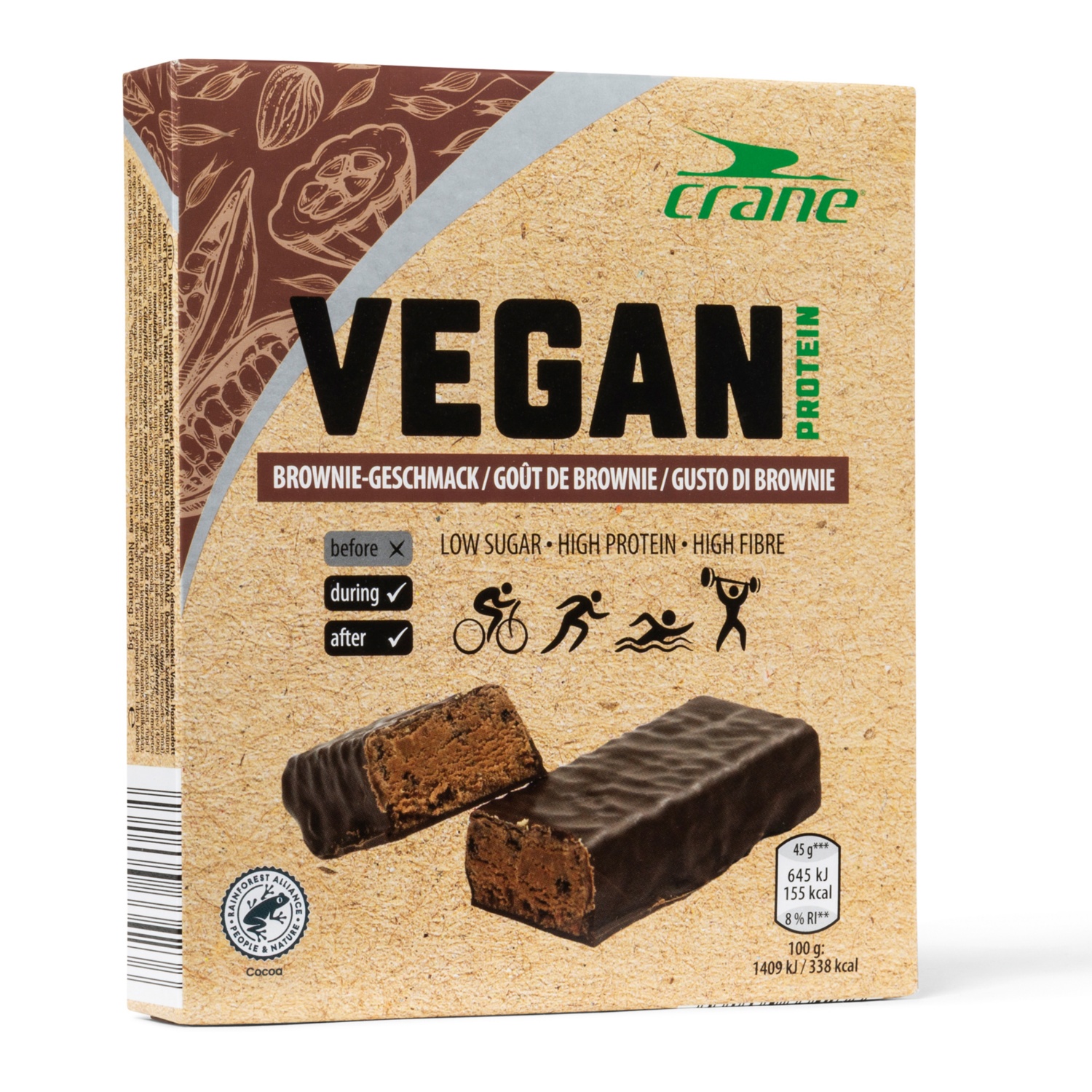 CRANE Veganska beljakovinska ploščica, z okusom brownieja