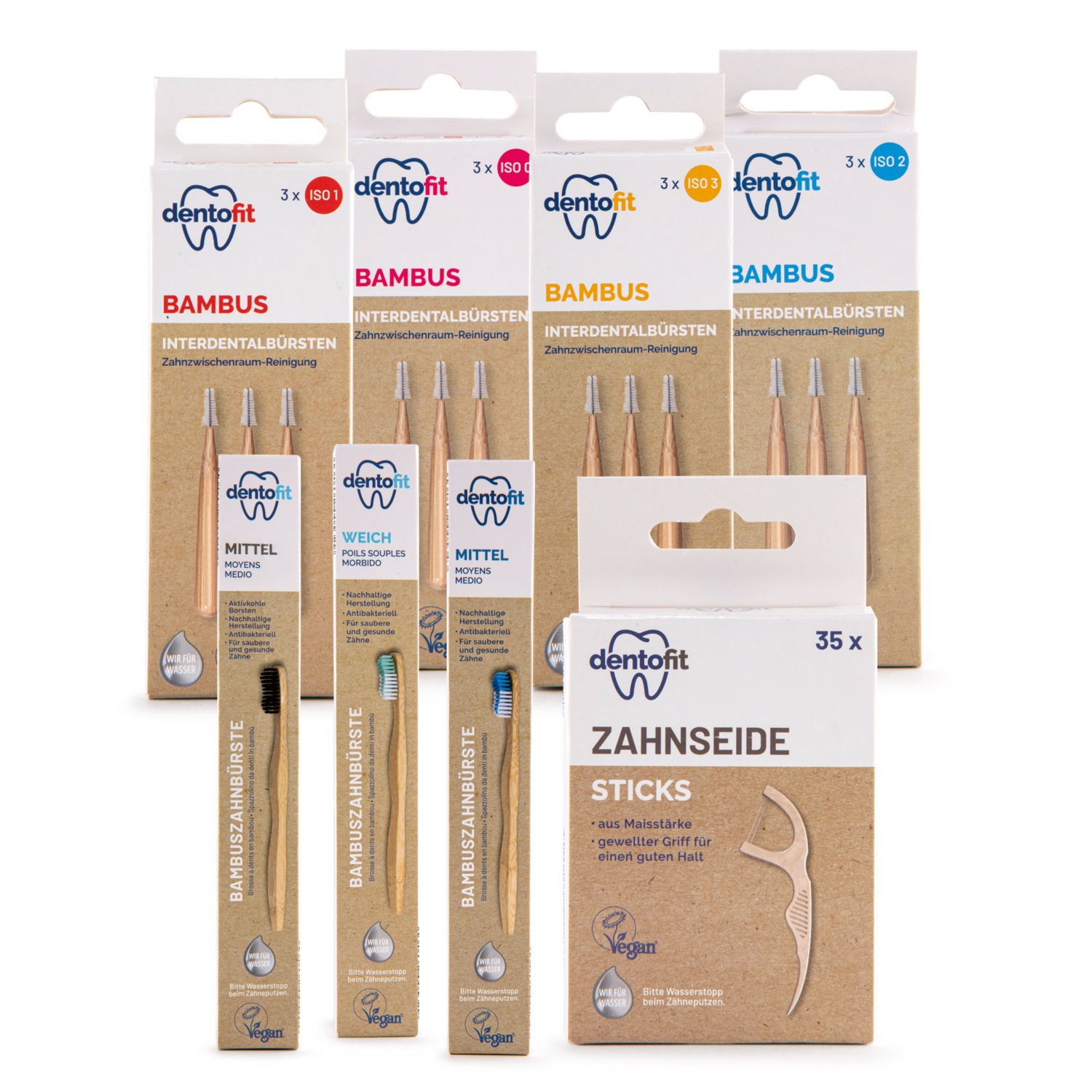- medzobna ščetka z držalom iz bambusa različnih velikosti