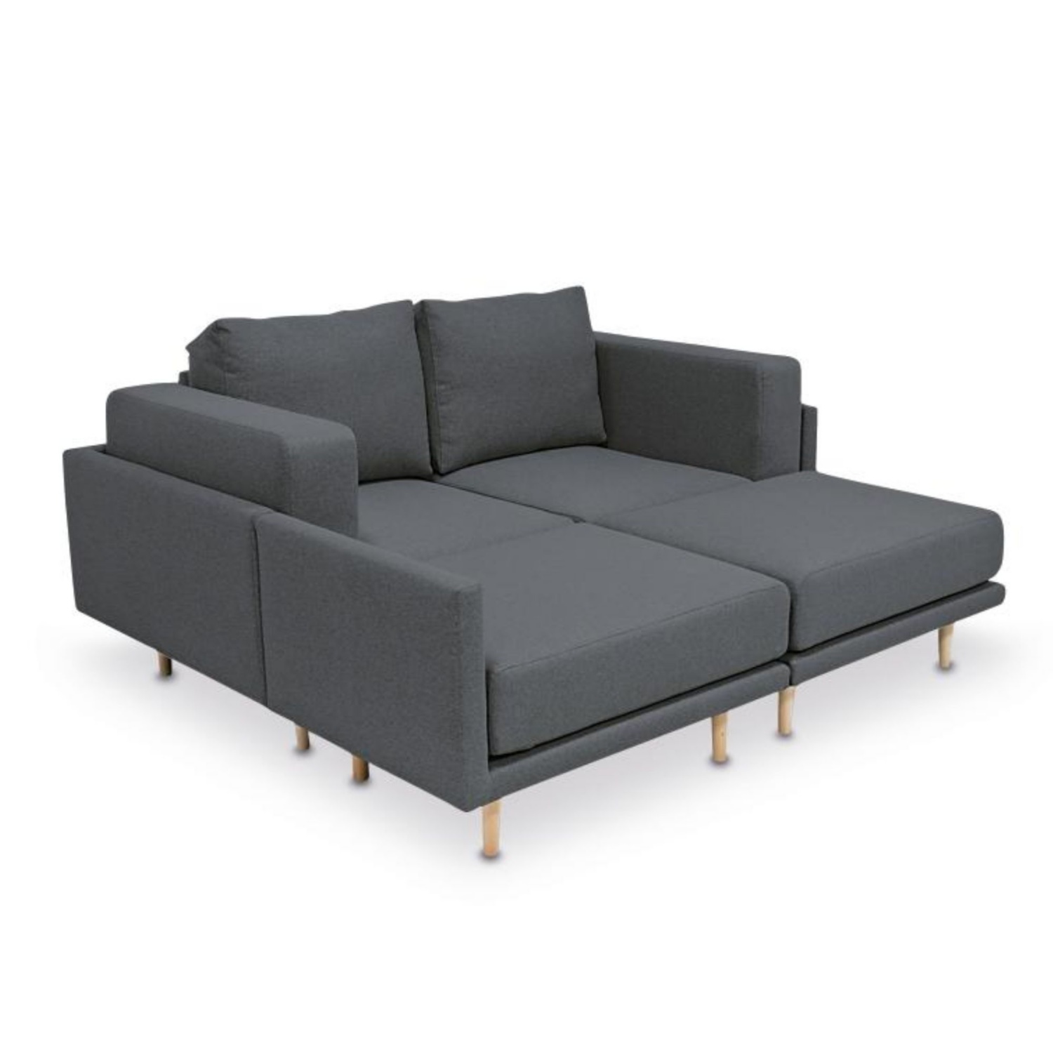 Komplet sestavljata 2 vogalna naslonjača, naslonjač in tabure, katere lahko po želji preoblikujete v različne postavitve. Iz kotne sofe model lahko preoblikujete v dvosed z naslonjačem in taburejem, dvojni počivalnik ali zakonsko oz. dve ločeni ležišči. Vse prevleke so snemljive, tako da jih lahko kadarkoli operete ali pa zamenjate z novimi. Izredno praktična in enostavna uporaba.