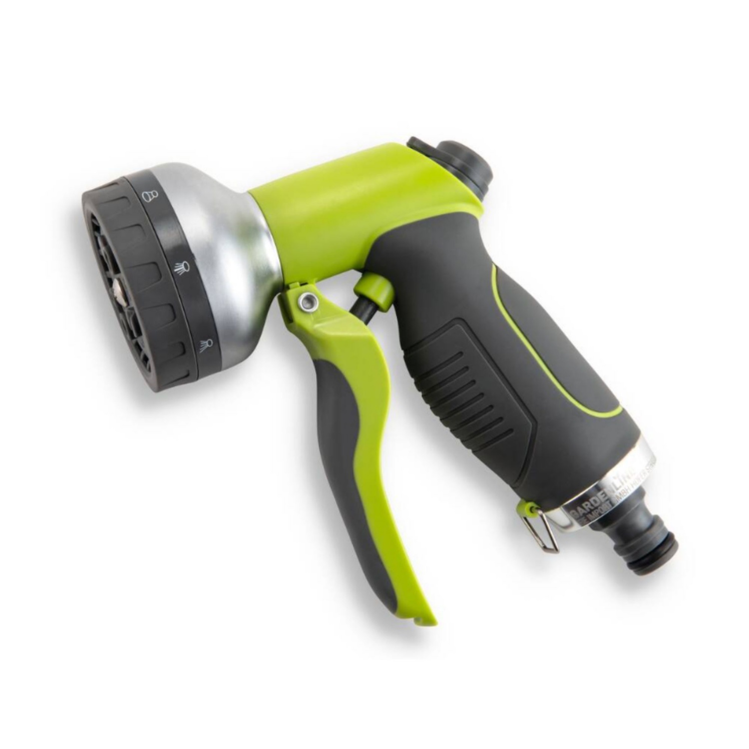 - vrtna brizgalka: z nastavljivo jakostjo pršenja – od močnega curka do nežnega pršenja