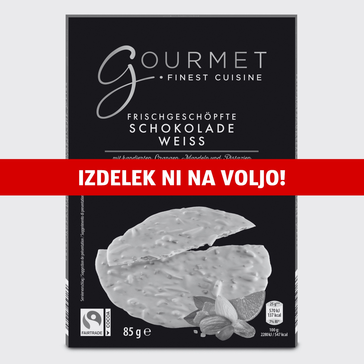 GOURMET FINEST CUISINE Čokolada, bela s pomarančo, mandlji in pistacija