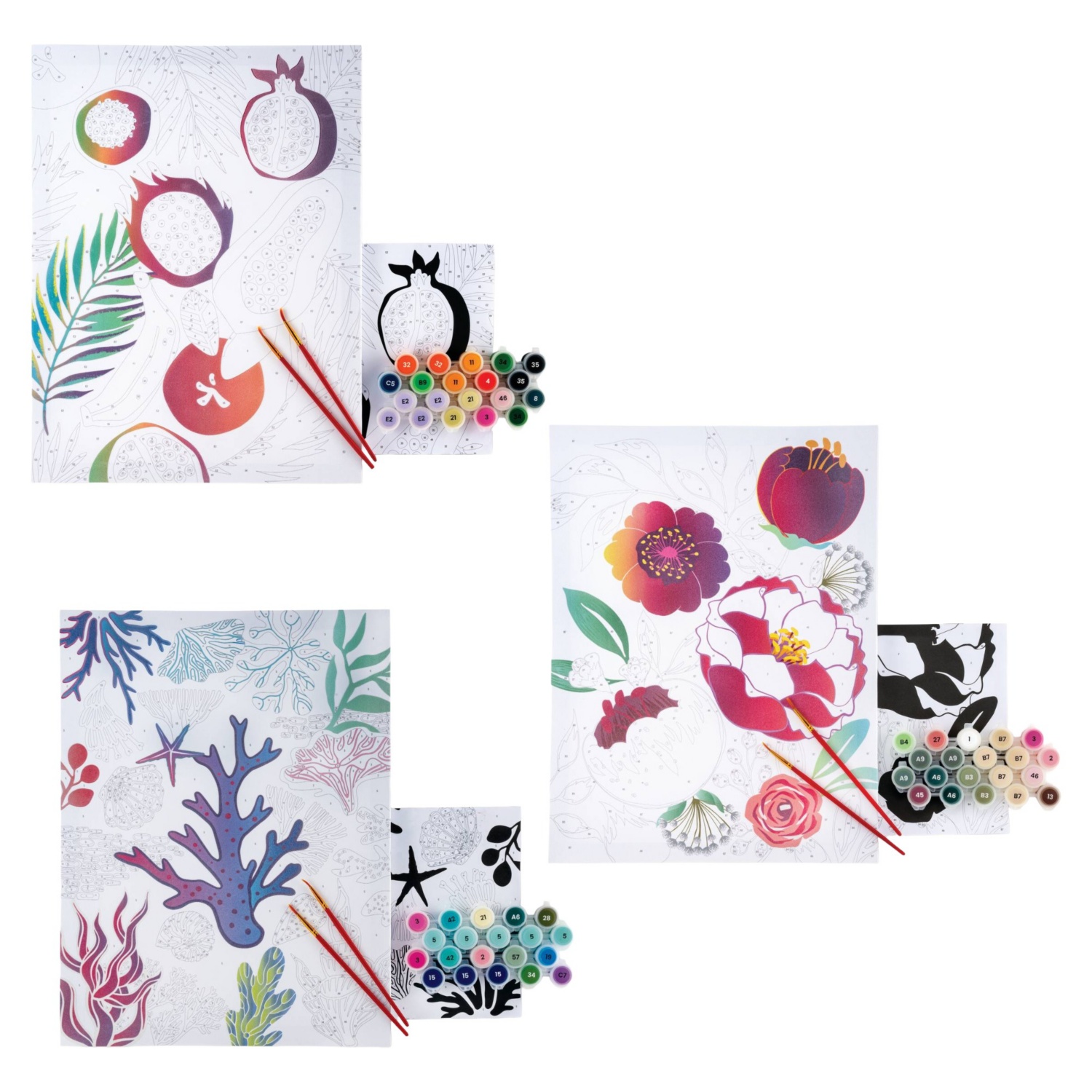 - vključuje platno vel. 254 x 254 x 13 mm, 12 lončkov za barvanje (13 ml), 2 čopiča in referenčno sliko