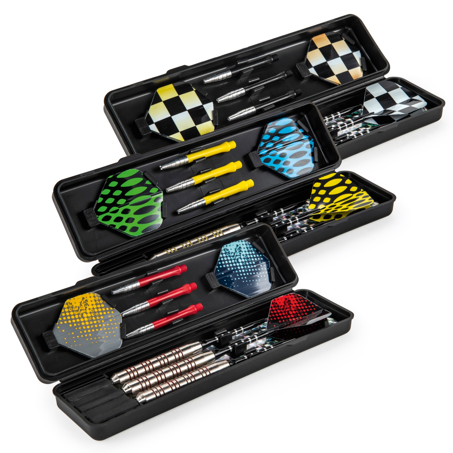 - s kovinsko konico: masa: 22 ali 24 g, za pikado s ploščo iz sisala, vključno s 3 dodatnimi držali za pero