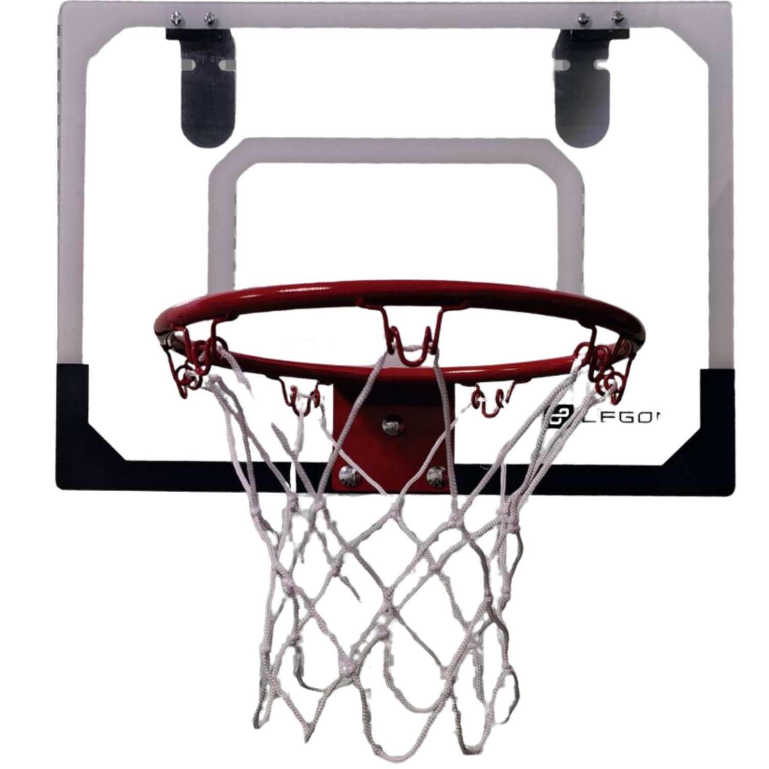 - Komplet vsebuje tablo, obroč, mrežico, pribor za namestitev koša na steno, žogo in tlačilko