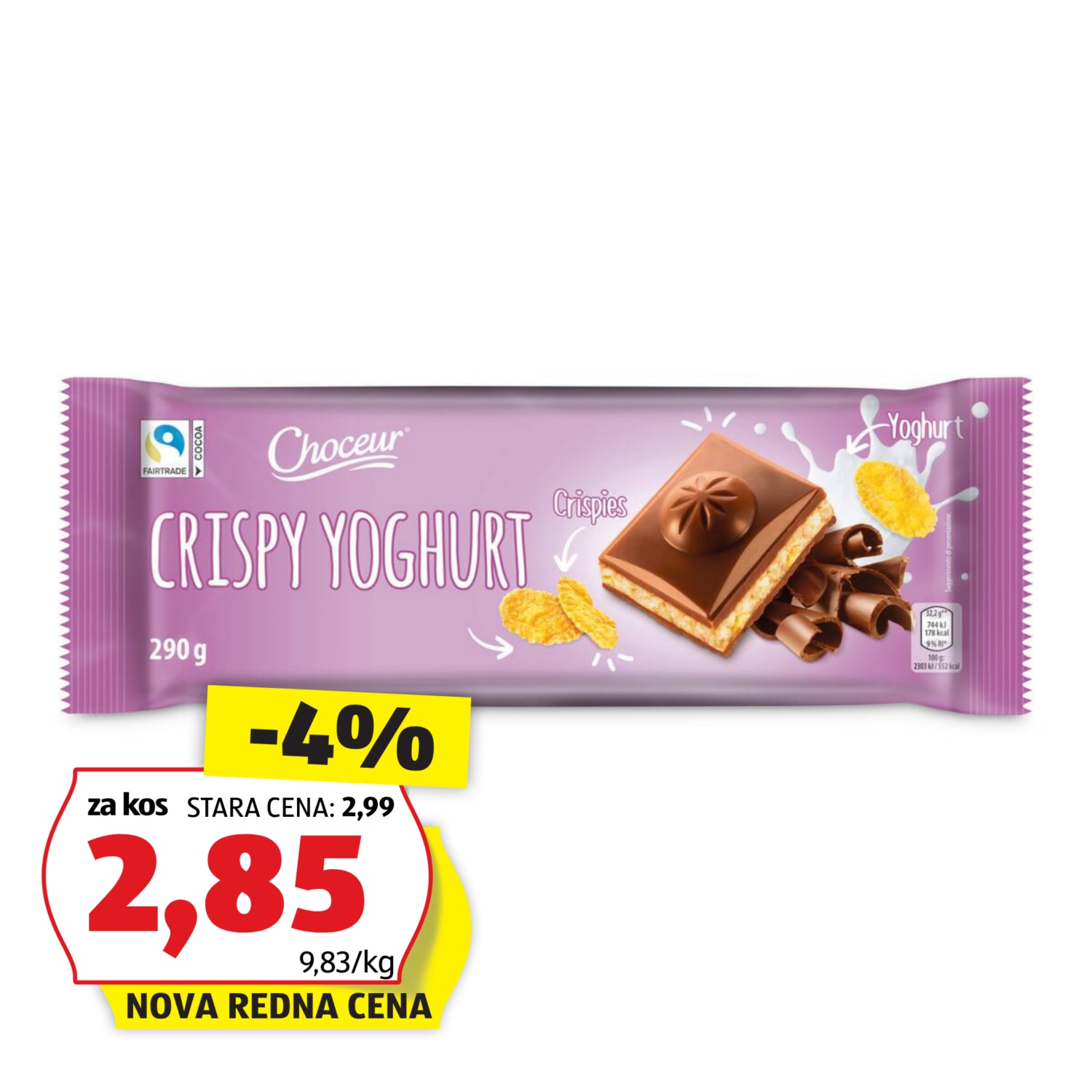Mlečna polnjena čokolada, jogurtovi crispiji