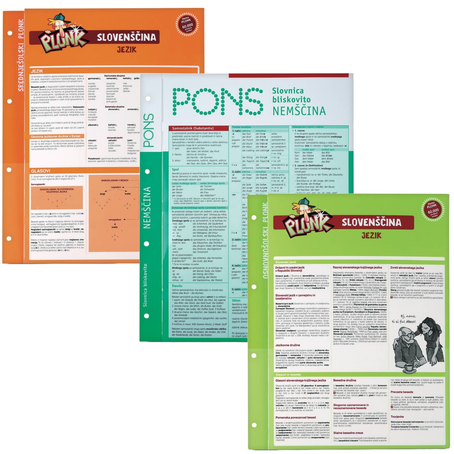 več vrst preglednic za hitro osveževanje znanja in skupek ključnih podatkov za določen predmet: fizika, matematika, nemška slovnica, angleška slovnica itd.