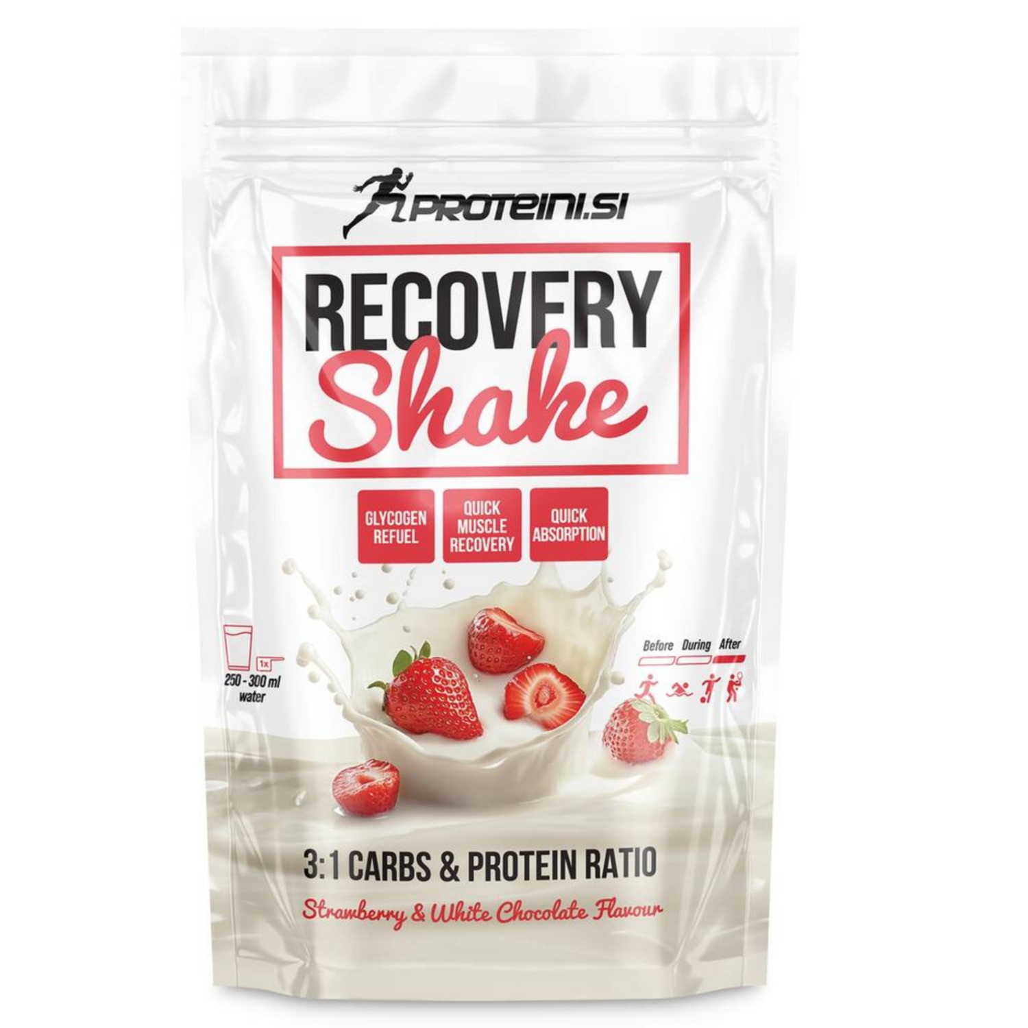 PROTEINI.SI Beljakovinski napitek, jagoda in bela čokolada