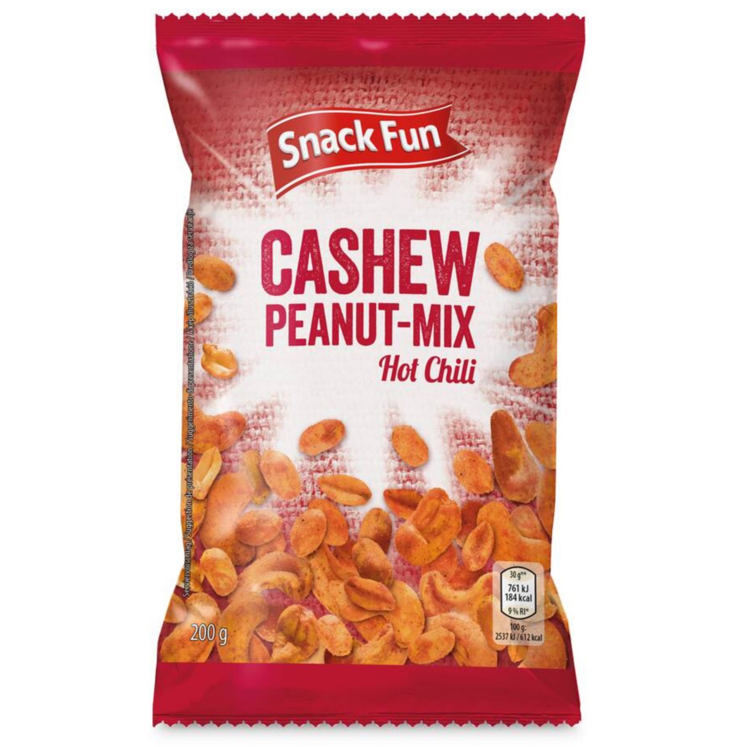 SNACK FUN Mešanica indijskih oreščkov in arašidov, čili