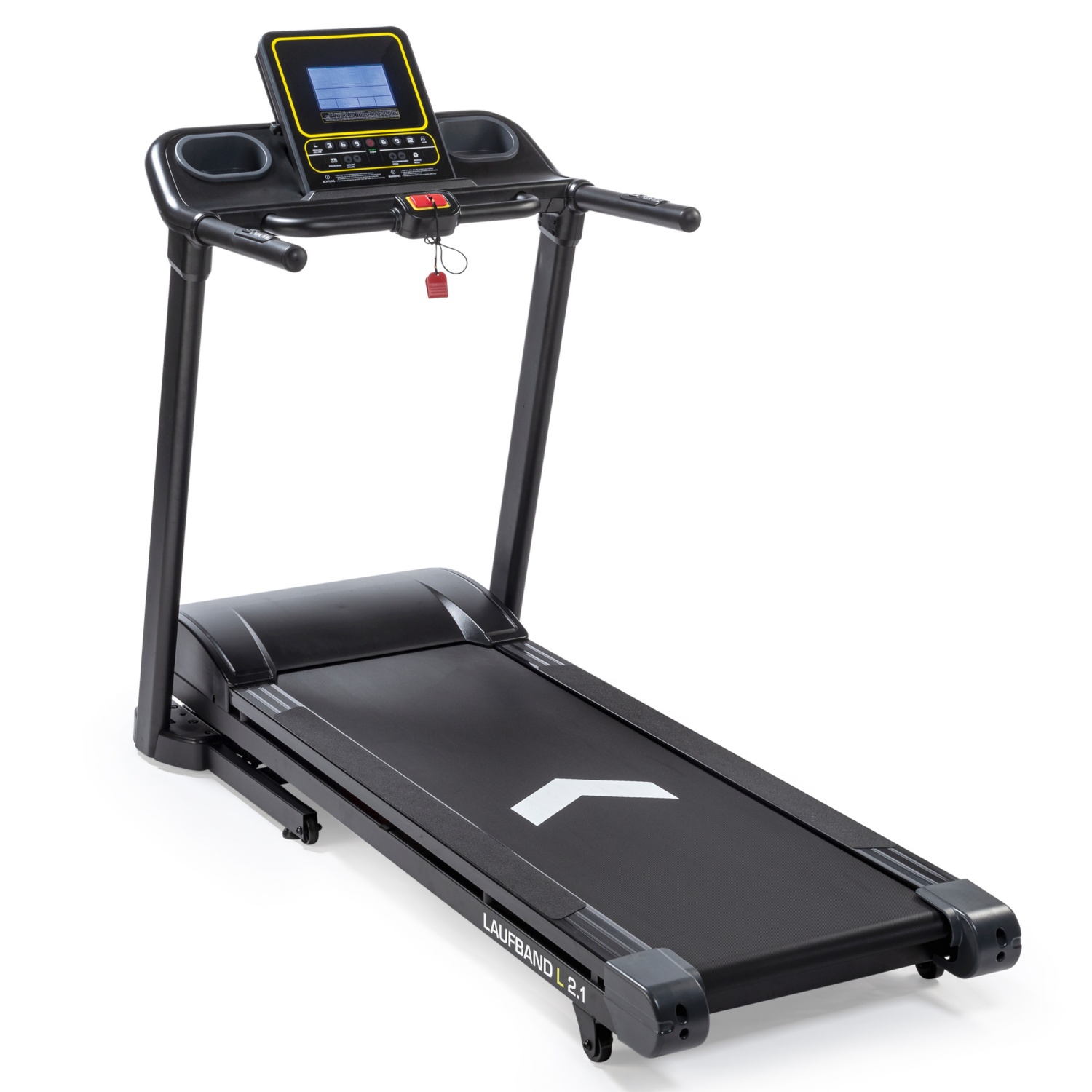 s stabilnim jeklenim ogrodjem, maks. nosilnost: 130 kg telesne mase, tekalna površina s sistemom blaženja sunkov (vel. 141,5 x 47,5 cm), vadbeni računalnik z osvetljenim LCD-zaslonom funkcije: