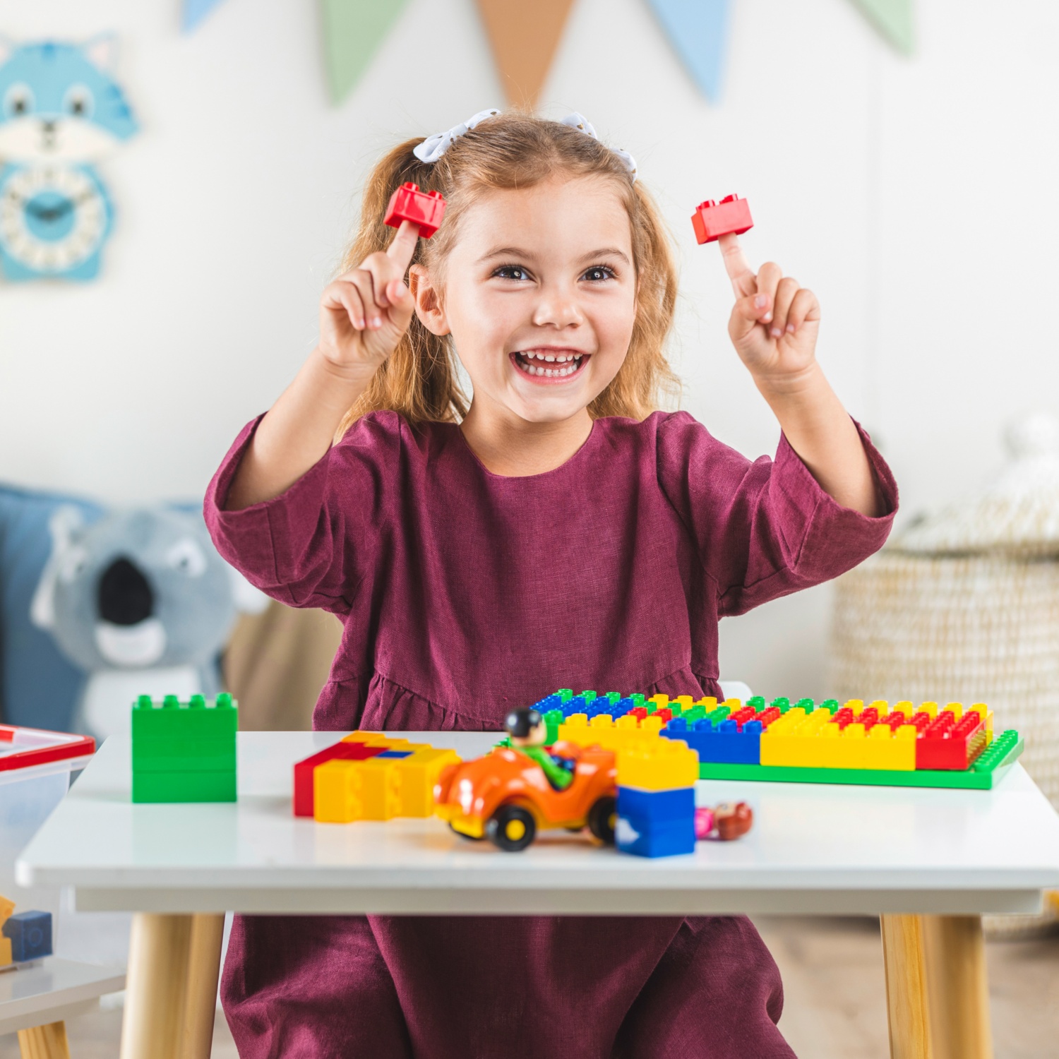 Lahko jih kombinirate z običajnimi kockami, pokrov zaboja je uporaben tudi kot podlaga za sestavljanje, primerne za otroke, starejše od 1 leta in pol