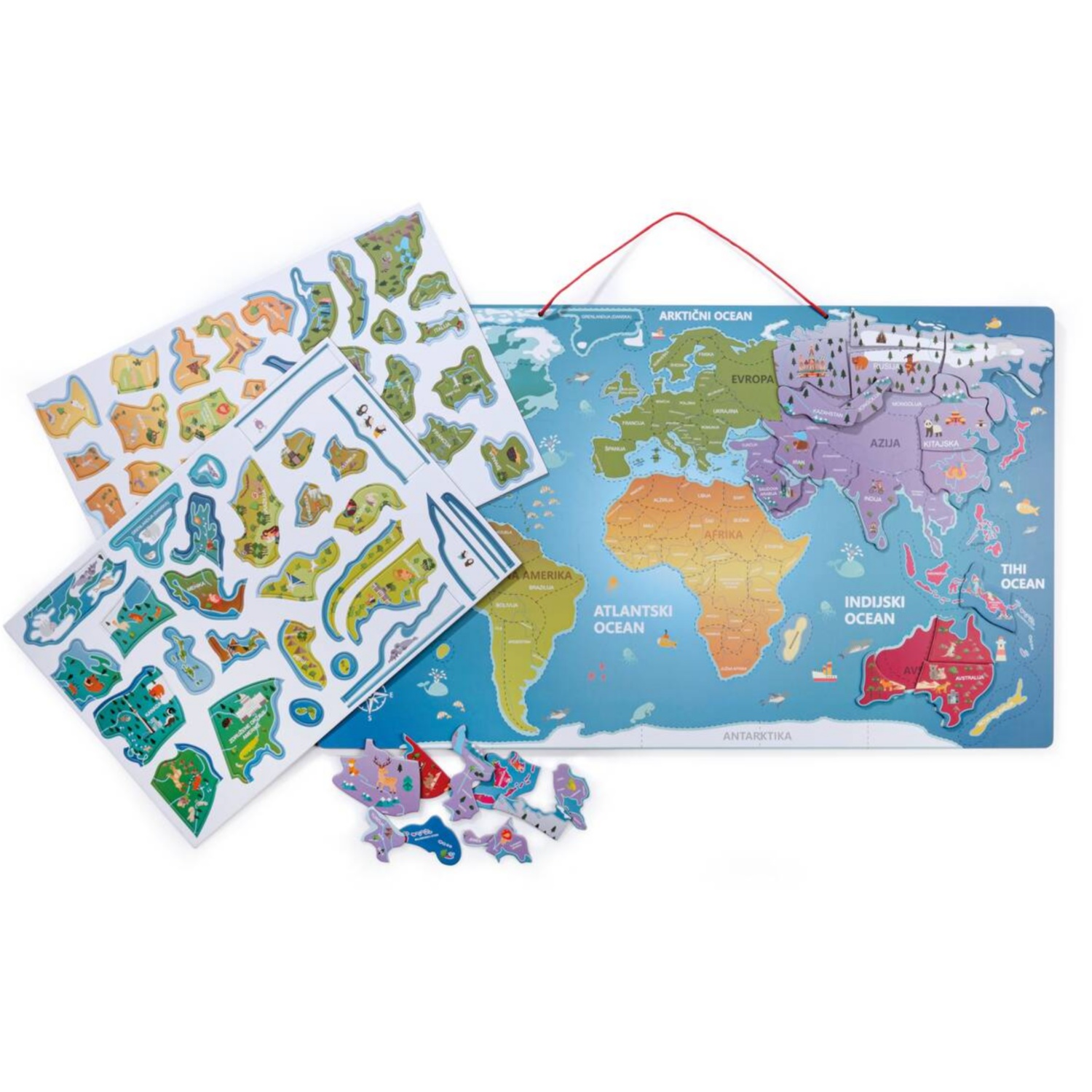 TOYLINO Lesena magnetna karta sveta ali Evrope, 94-delni komplet