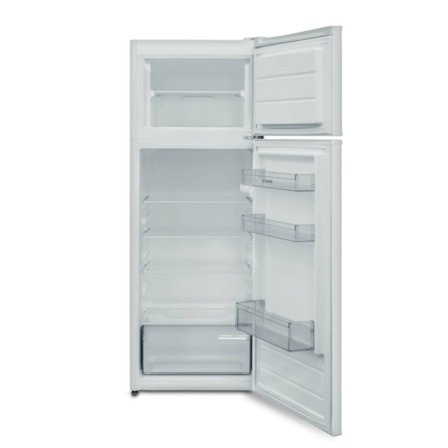 Prostostoječi kombinirani hladilnik Vox KG 2500F spada med varčne hladilnike, kar izkazuje dejstvo, da spada v novi energijski razred F. Letno porabi 222 kWh energije, med delovanjem pa proizvede le 41 dB hrupa. Ponuja 3 steklene police in 3 površine za odlaganje na vratih, pri katerih lahko nastavljate smer odpiranja. V nostranjostise nahaja tudi predal za sadje in zelenjavo. Odlikujejo ga odlična LED osvetlitev, sistem samodejnega odtaljevanja in antibakterijska zaščita. Prostornina hladilnika znaša 171 litrov, v zamrzovalniku pa je na voljo 42 litrov prostora. TEHNIČNE SPECIFIKACIJE: