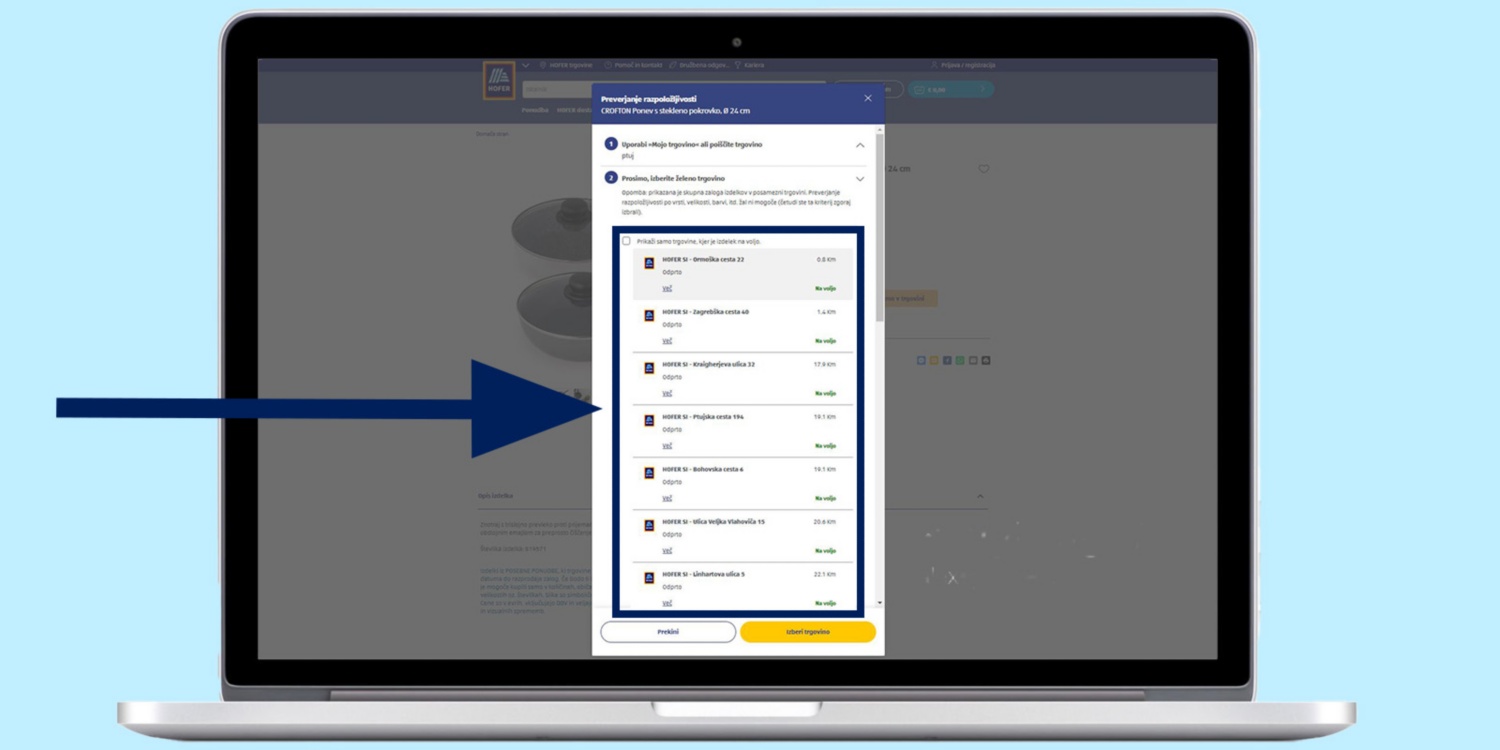 Preverite zalogo izdelkov v trgovinah HOFER