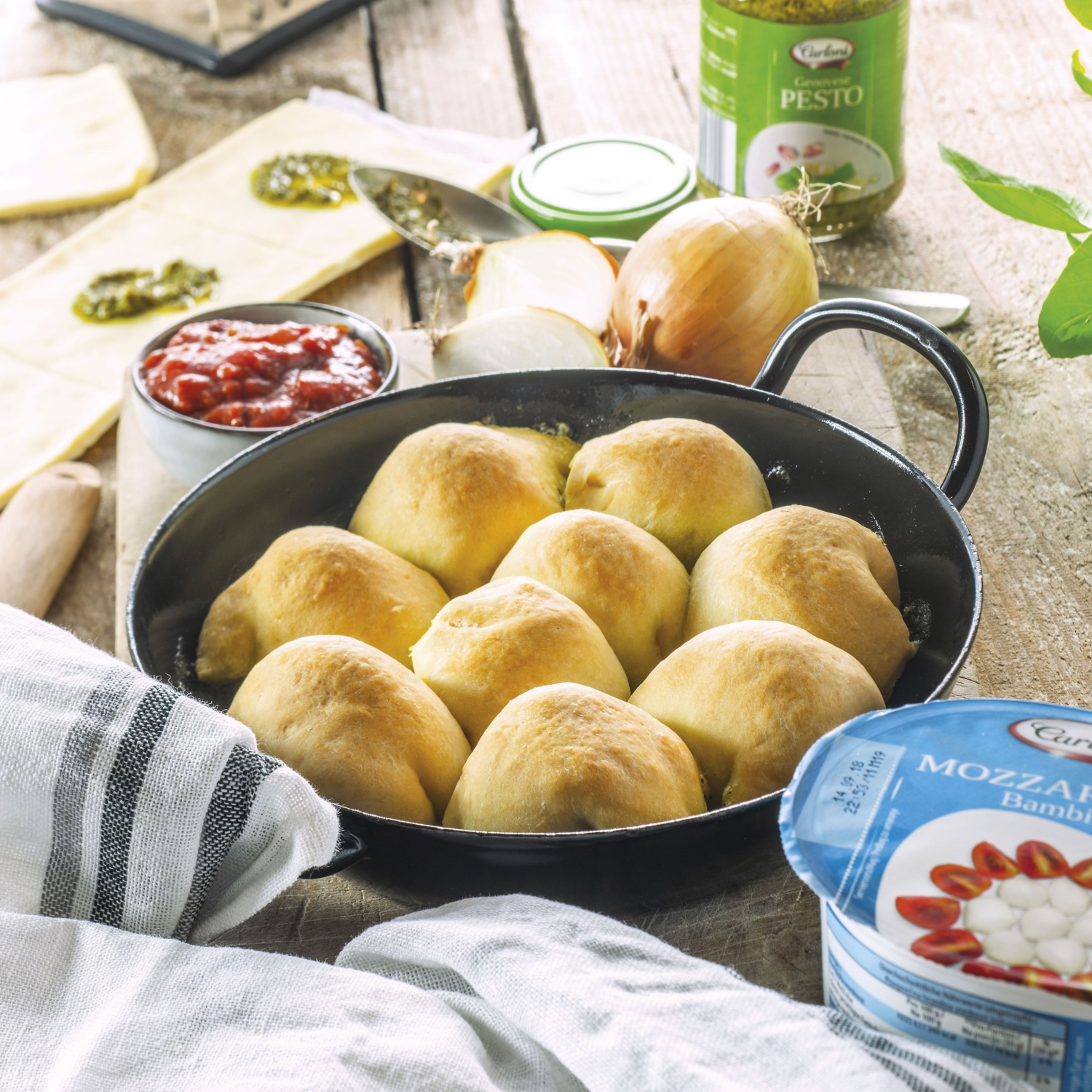 Slani buhteljni z mozarello in paradižnikovo pomako. Odlična ideja za prigrizek ob družabnih večerih.