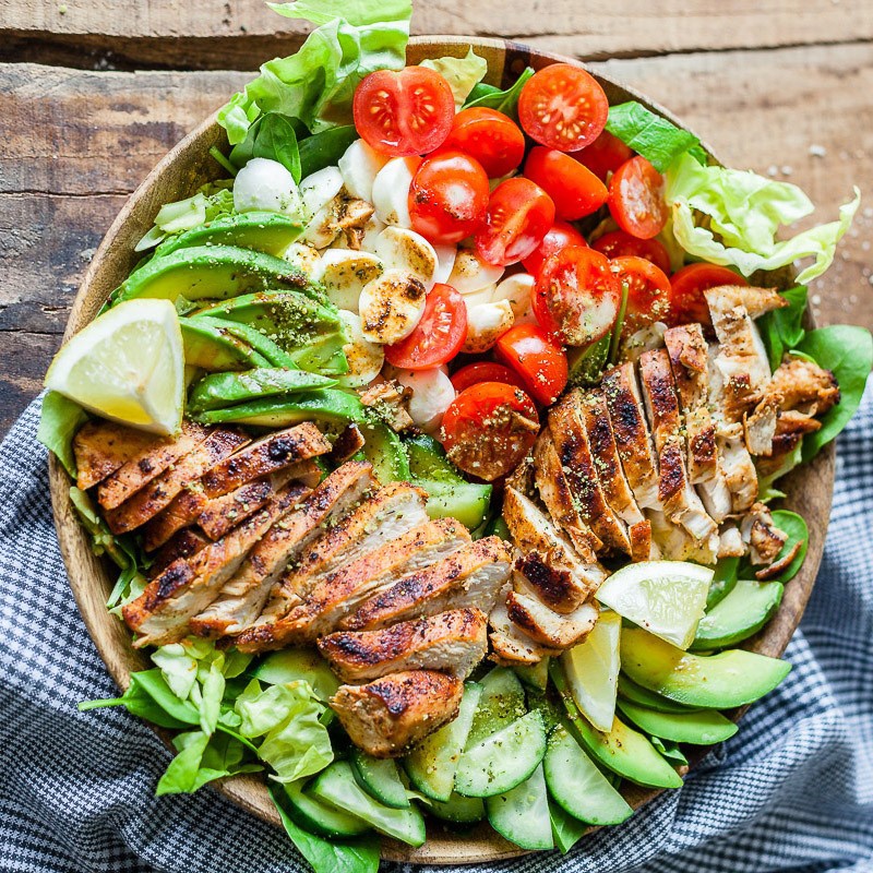 Pripravite caprese solato s piščancem in avokadom po receptu Vibrant Plate. Solata je zdrava, nasitna in izredno okusna. Podroben opis spodaj