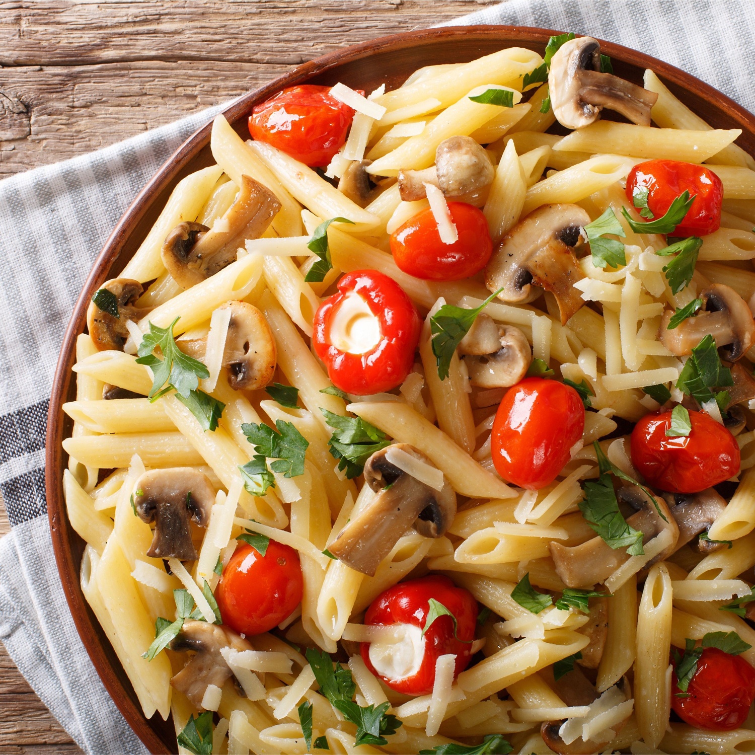 Ideja, kako še pripraviti testenine. Mlada čebula, šampinjoni, češnjevi paradižniki in smetanova omaka bodo odlična kombinacija s peresniki.