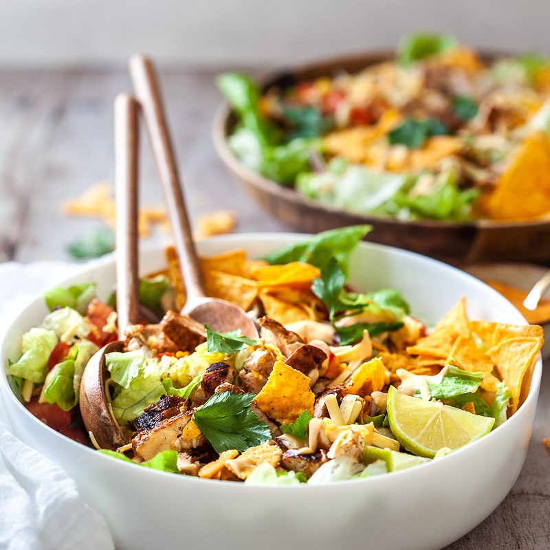 Tacos malo drugače. Pripravite taco solato iz piščančjih prsi, solatnih listov, paprike, sira in tortilija čipa, za piko na i pa dodajte še nacho omako. Okusno! Podroben opis spodaj